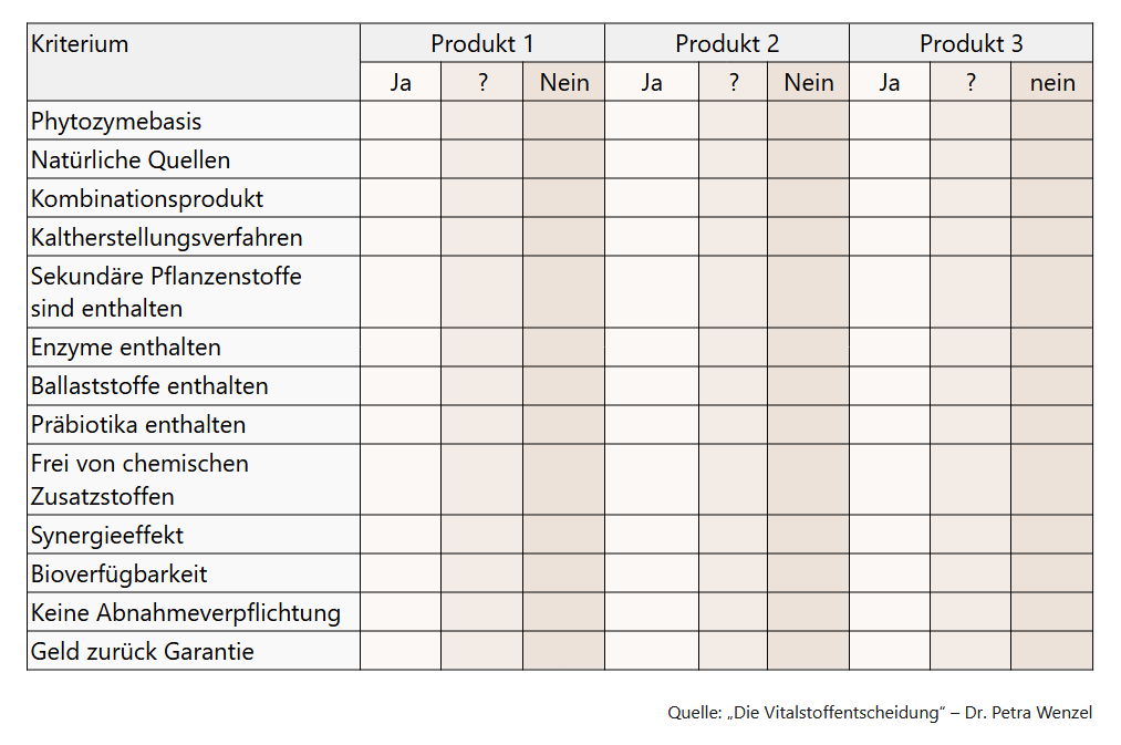 Checkliste zur Qualität von Nahrungsergänzungsprodukten